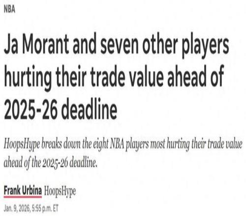 砸手里了!在距离交易截止日不足一个月之际,美媒《hoopshype》晒出本季交易价值暴跌的8大球星,其中勇士追梦入选,独行侠浓眉排第一。